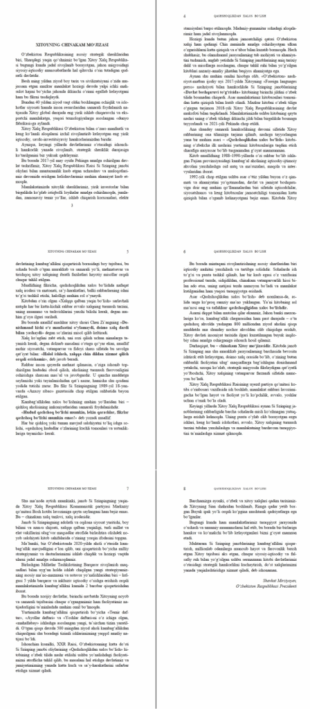 此外,古丽巴努木·克拜吐里和吉莉合译的《习近平讲故事》《平“语”近人——习近平总书记用典》乌兹别克文版分别于2019年、2022年在乌兹别克斯坦出版发行,古丽巴努木·克拜吐里还主持审定《习近平谈治国理政》第一卷、第二卷乌兹别克文版,为乌兹别克斯坦读者送去了更多“中国智慧”和“中国故事”。