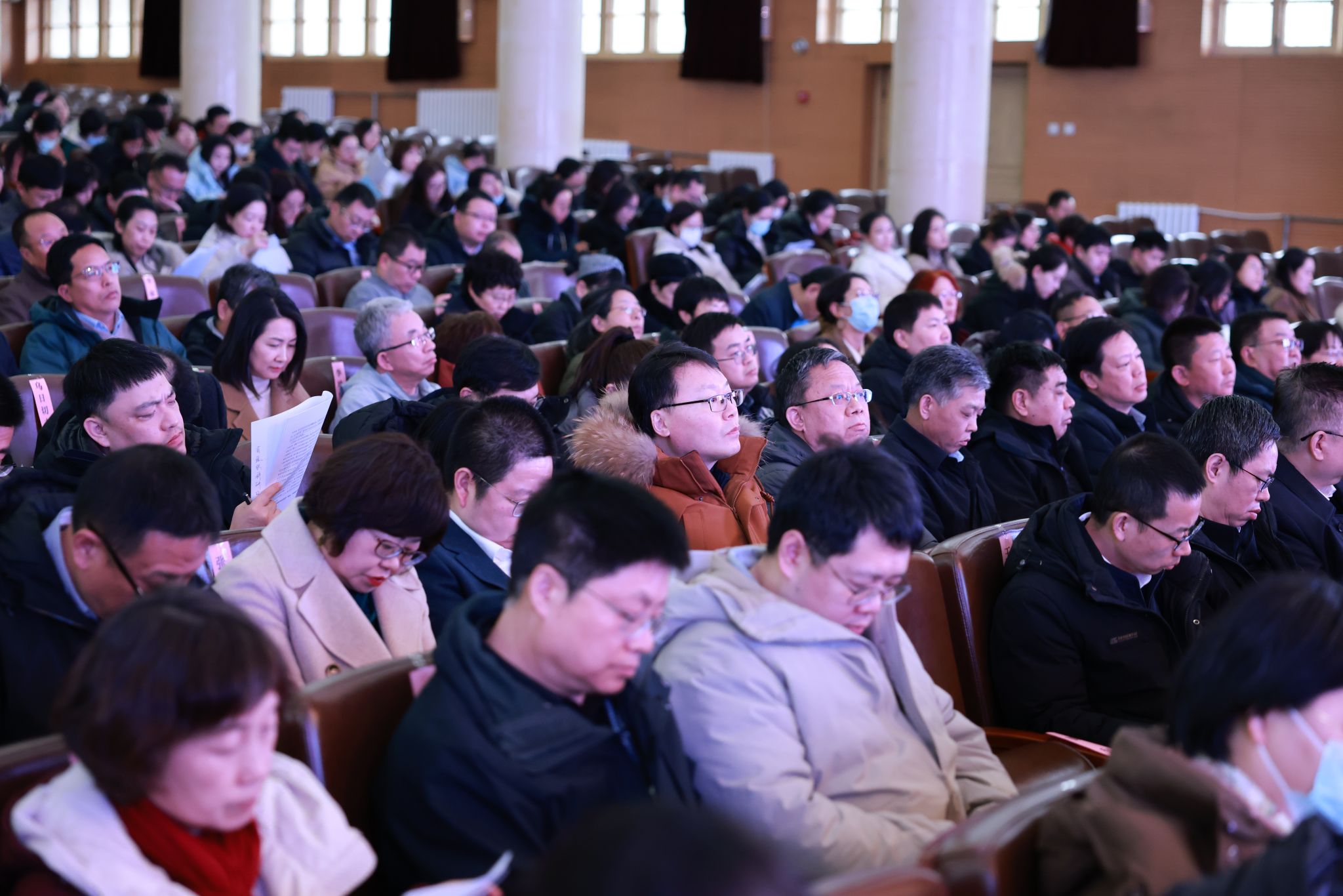 工作部署会以北京海淀校区、丰台校区和海南国际学院“一校三址”线上线下方式同步召开。全体校领导、处级干部、科长(主任)、教学科研一线教师党支部书记、校学术委员会成员,以及各级人大代表、政协委员和民主党派负责人约450人参会。(摄影/马丹妮)