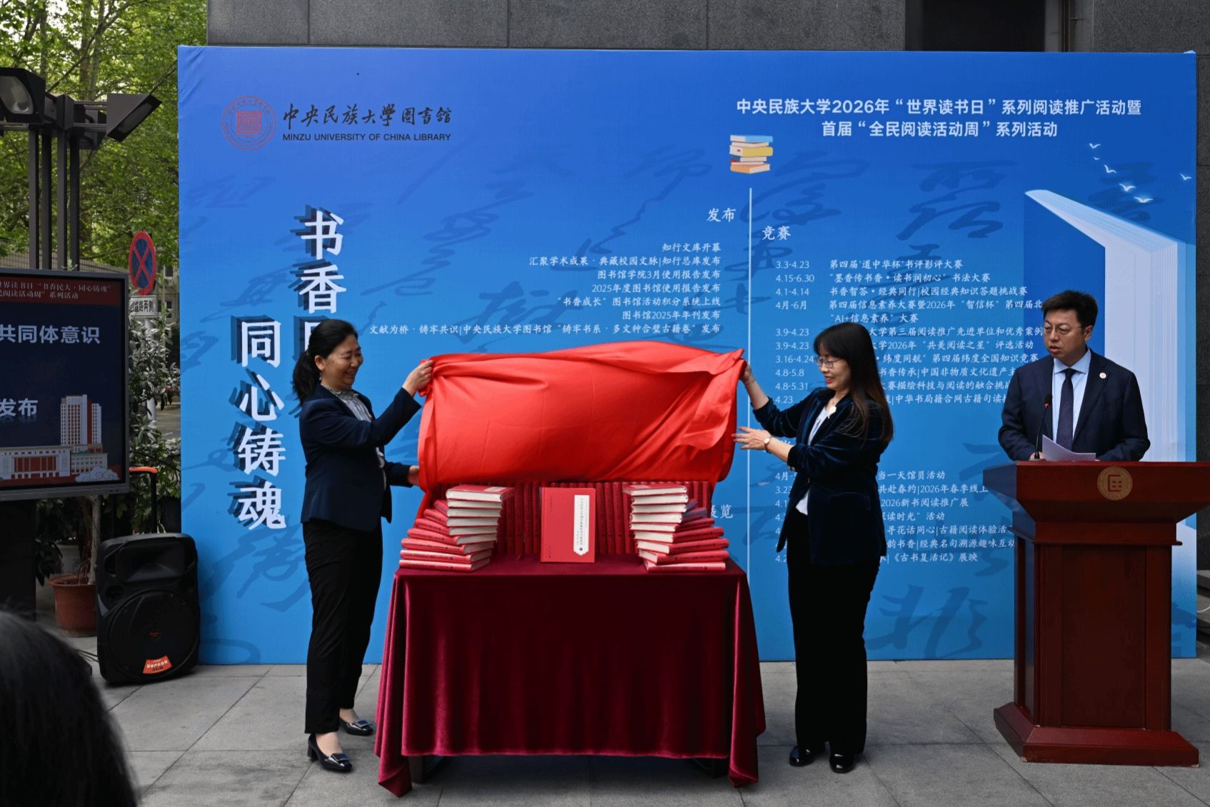 2026年04月25日4月23日上午,中央民族大学2026年世界读书日“书香民大·同心铸魂”阅读推广暨首届“全民阅读活动周”系列活动启动仪式在海淀校区图书馆前举行。